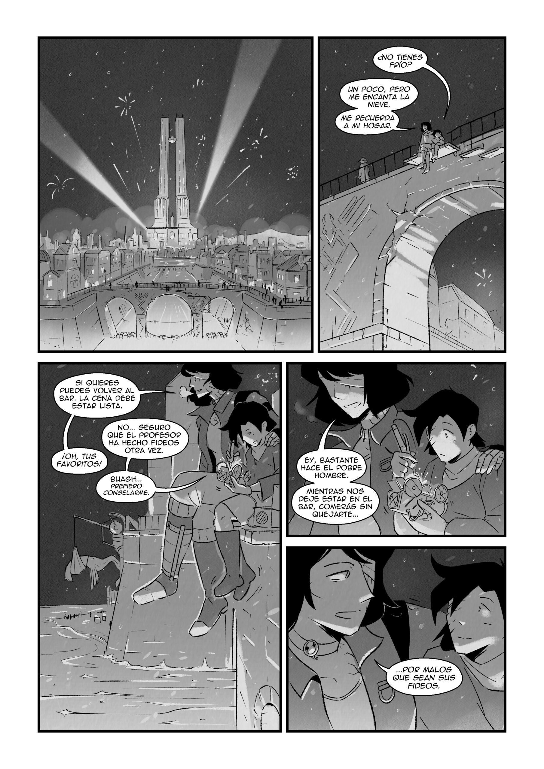 Agradecimiento eterno también a los que han donado en Patreon (especialmente a quien ha pedido que en adelante me dirija a él como Rey y Señor). El 20 de octubre estará disponible ahí la primera tanda de contenido exclusivo del behind the scenes, profundizando especialmente en la construcción de la ciudad, personajes y demás elementos del primer capítulo.